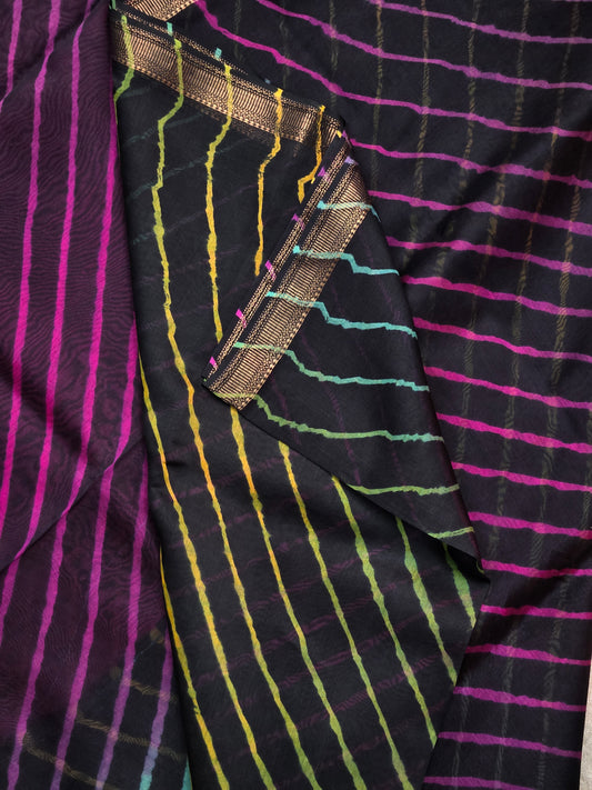 BLACK TIE DYE LEHARIYA SILK COTTON SAREE