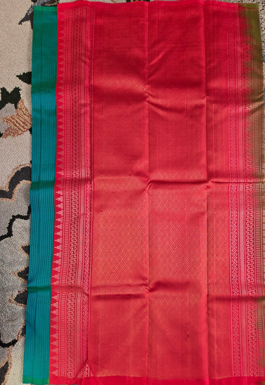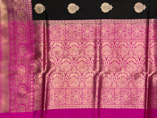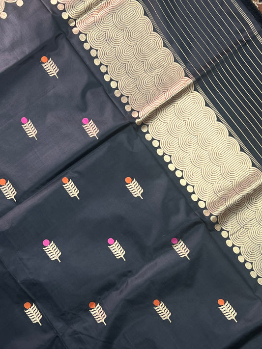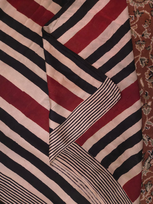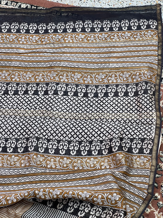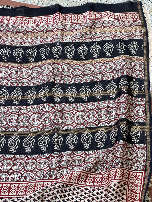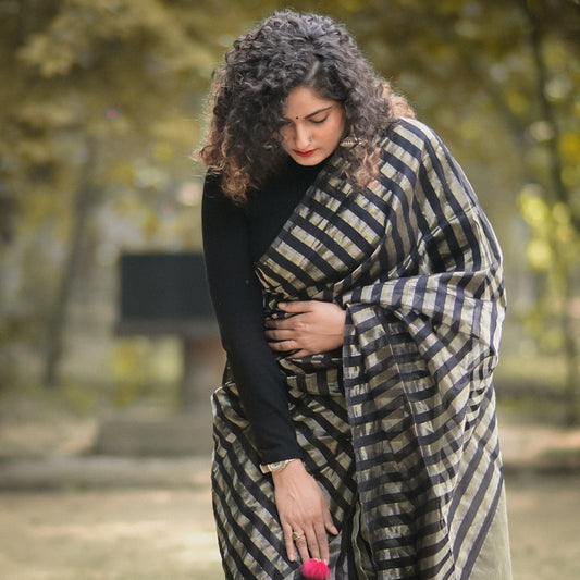 Black Gold and Silver Zari Stripes Maheshwari Cotton Silk