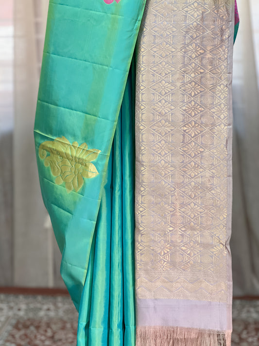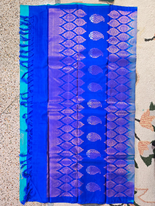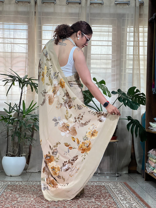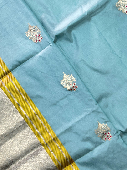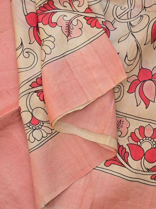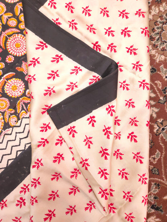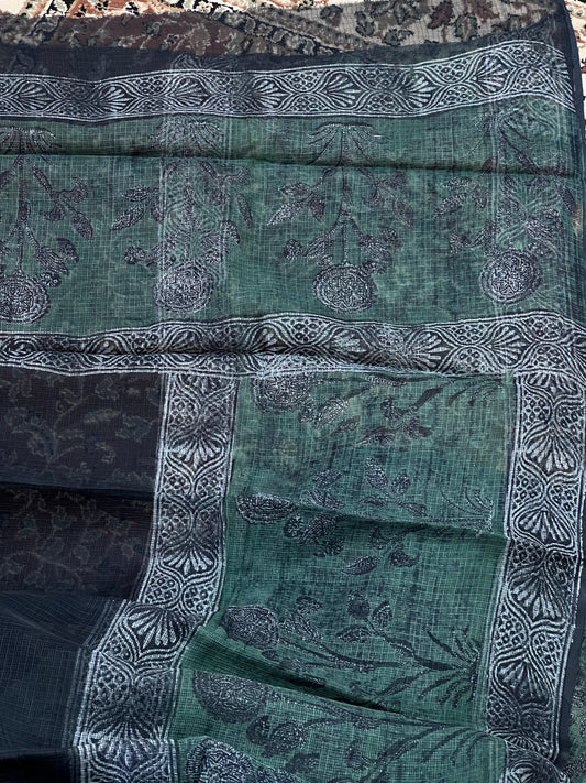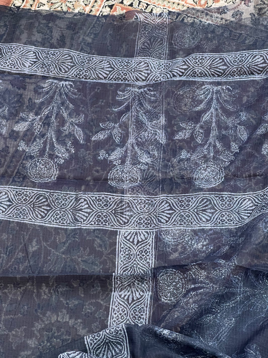 BEIGE BLUE HANDBLOCK KOTA DORIYA SAREE