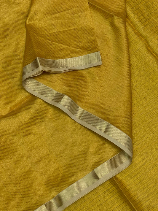 YELLOW SILK COTTON HANDBLOCK SAREE