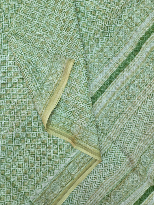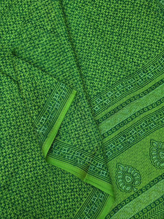 Sold outGREEN HANDBLOCK KOTA DORIYA SAREE