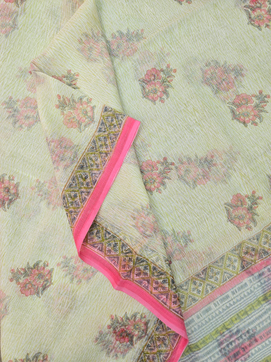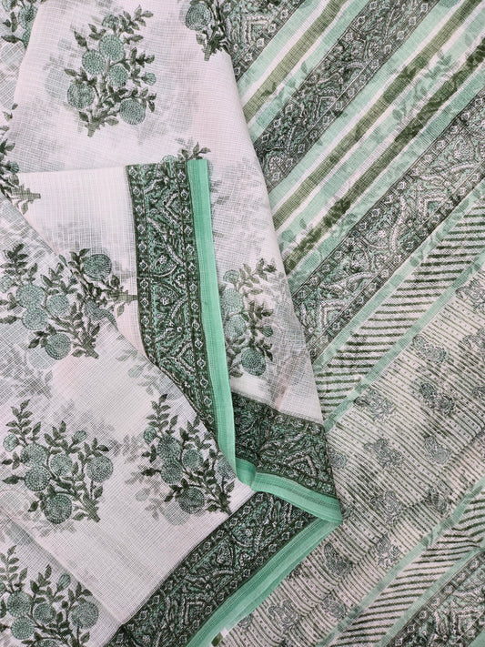 WHITE GREEN HANDBLOCK KOTA DORIYA SAREE