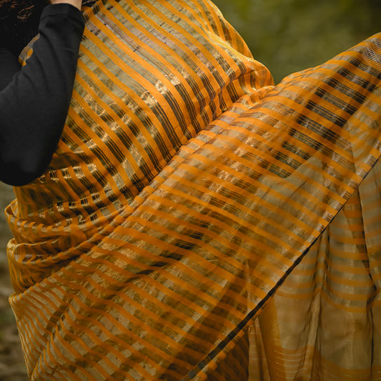 Yellow Gold Zari Stripes Maheshwari Cotton Silk