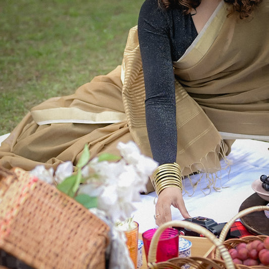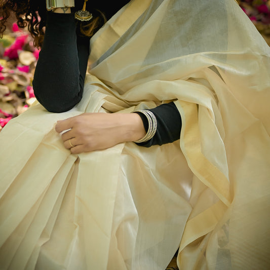 Golden Cotton Silk Handwoven Maheshwari Saree