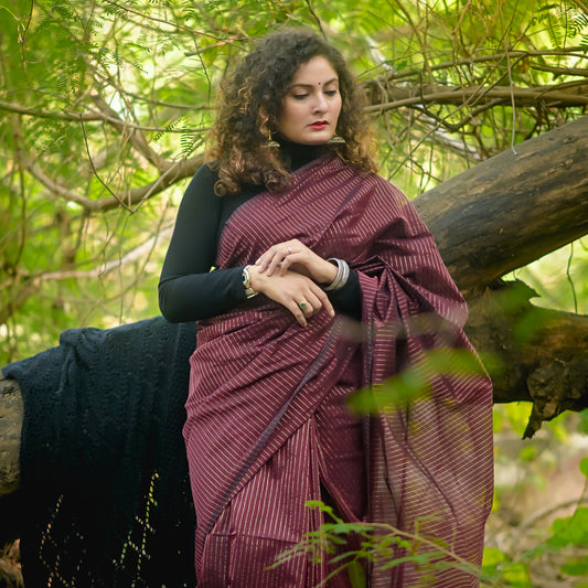 Maroon Cotton Silk Handwoven Maheshwari Saree