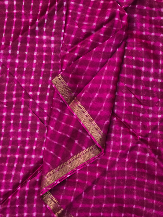 MAGENTA TIE DYE LEHARIYA SILK COTTON SAREE