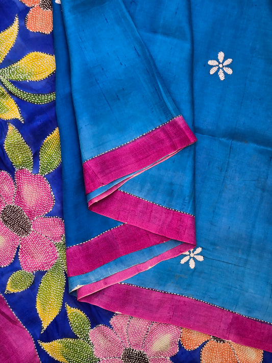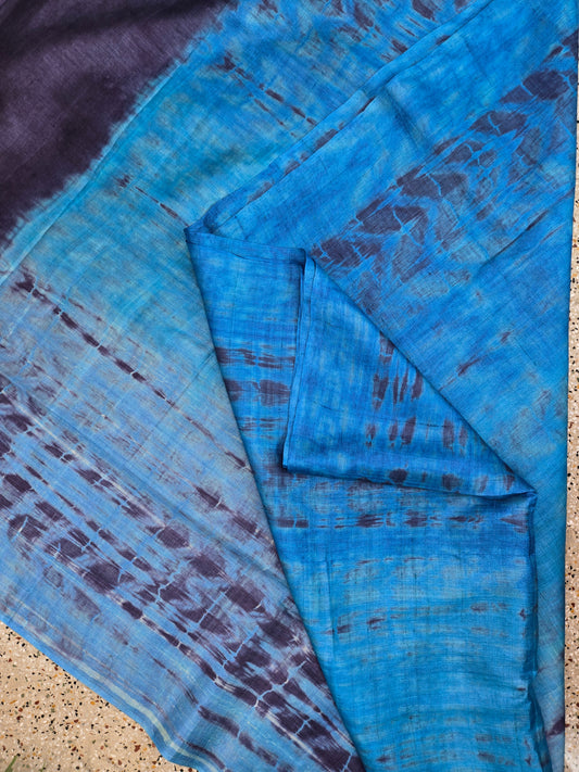 BLUE TIE DYE MOTDA SILK COTTON SAREE