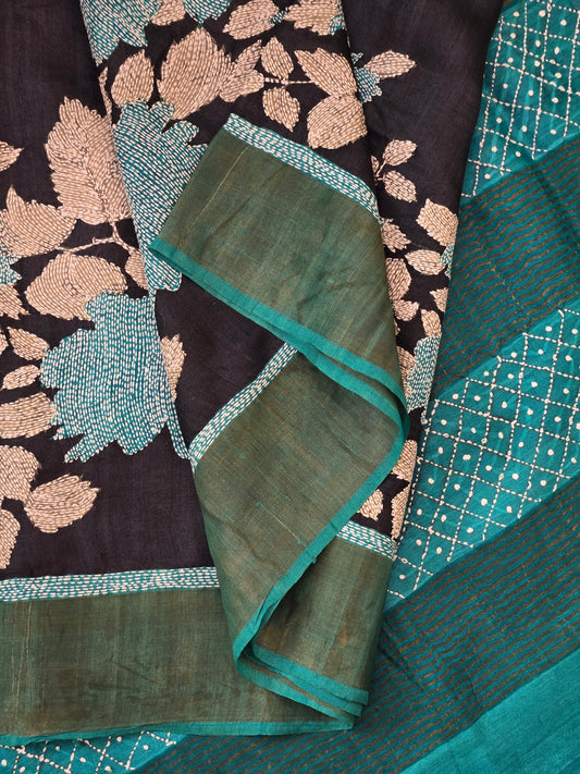 BLACK TIE DYE LEHARIYA SILK COTTON SAREE