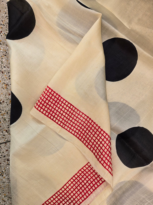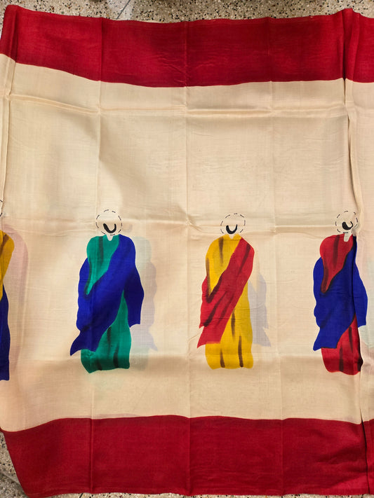 Sold outIvory White Painted Silk Saree