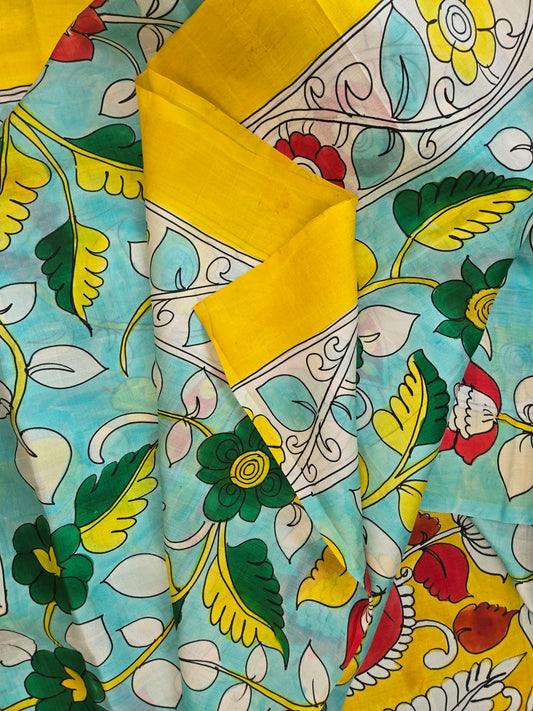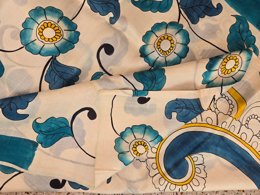 Sold outTeal Blue Painted Silk Saree