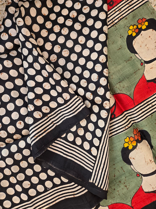 Sold outBlack Painted Mulberry Silk Saree