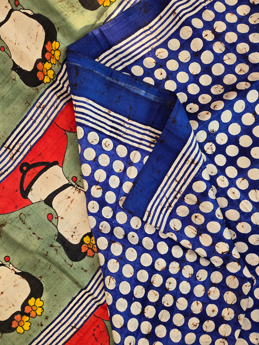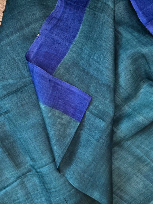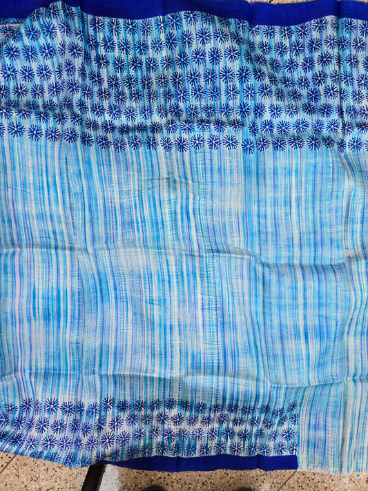 Blue Printed Tussar Silk Saree