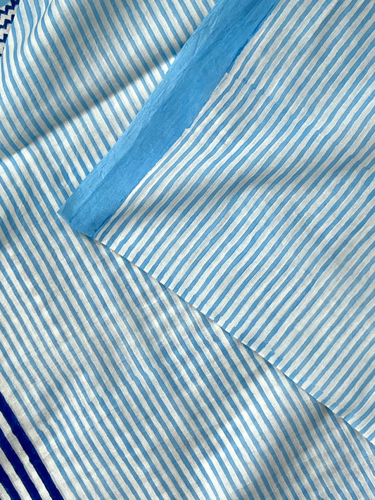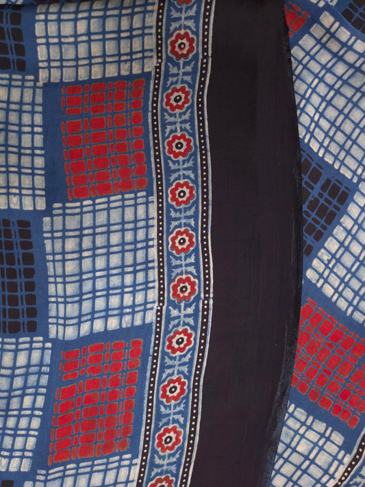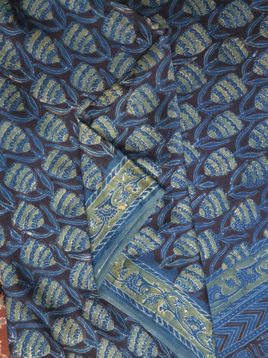 Blue Handblock Printed Modal Silk Saree