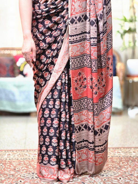 Sold outBlack Modal Printed Saree