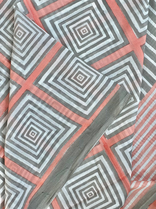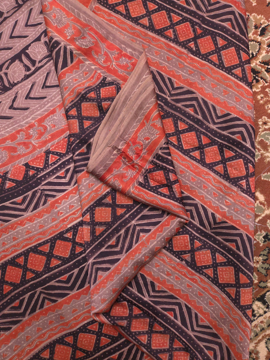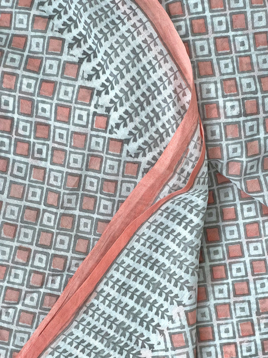 Sold outPeach Grey Printed Cotton Saree