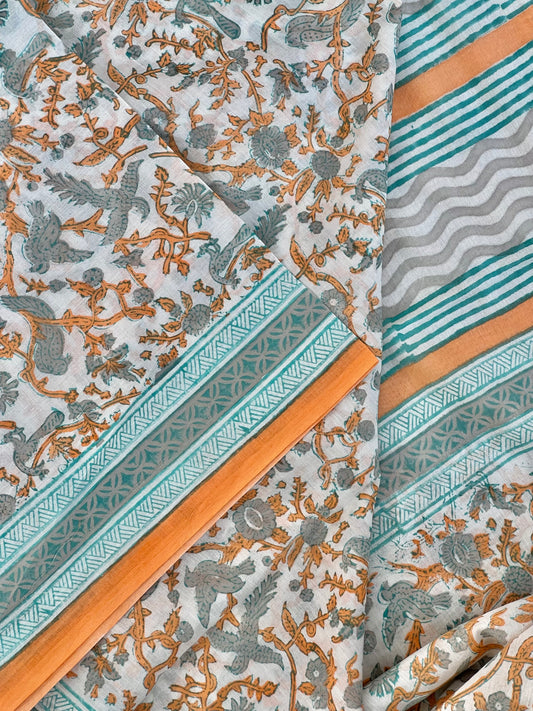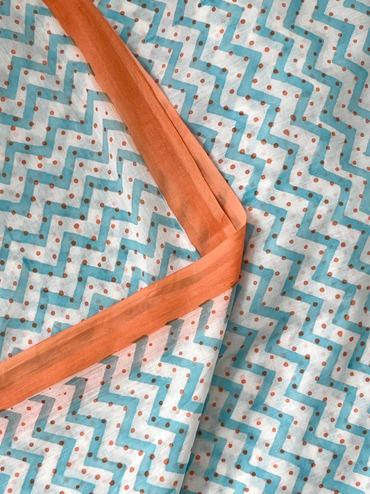 Peach Blue Printed Cotton Saree