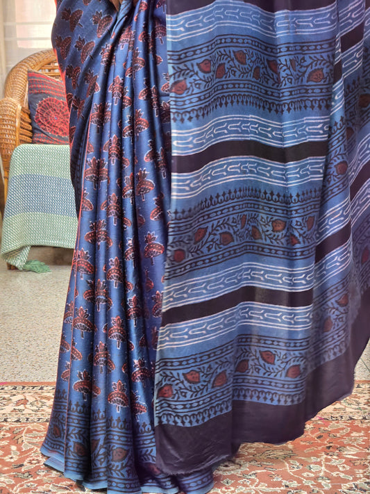Sold outIndigo Printed Modal Silk Saree