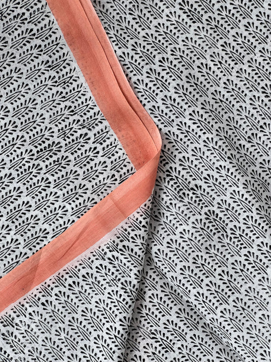 Sold outWhite Peach Printed Cotton Saree
