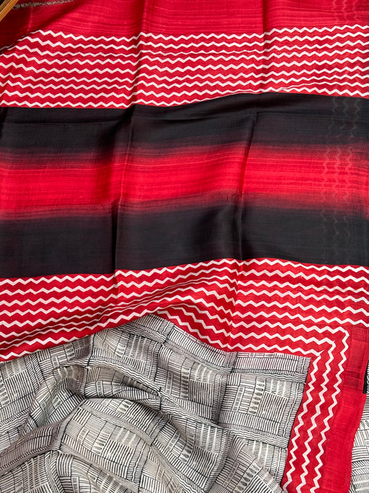 Sold outWhite Red Printed Silk Saree