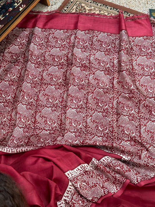 Sold outRed White Handblock Silk saree