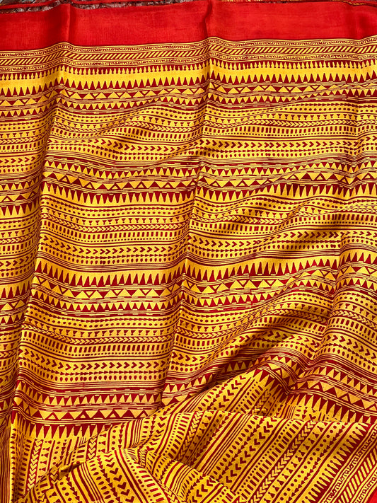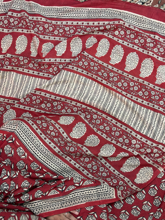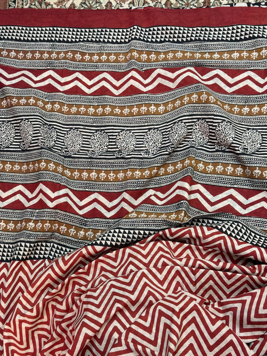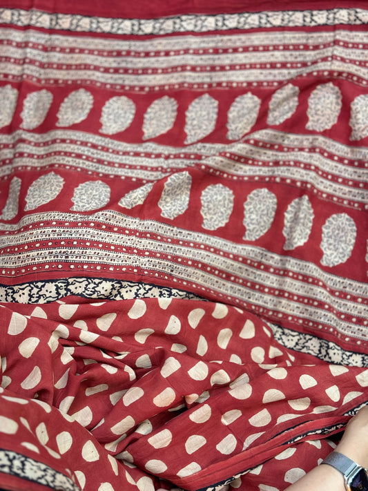 Sold outRed Handblock Printed Cotton Saree