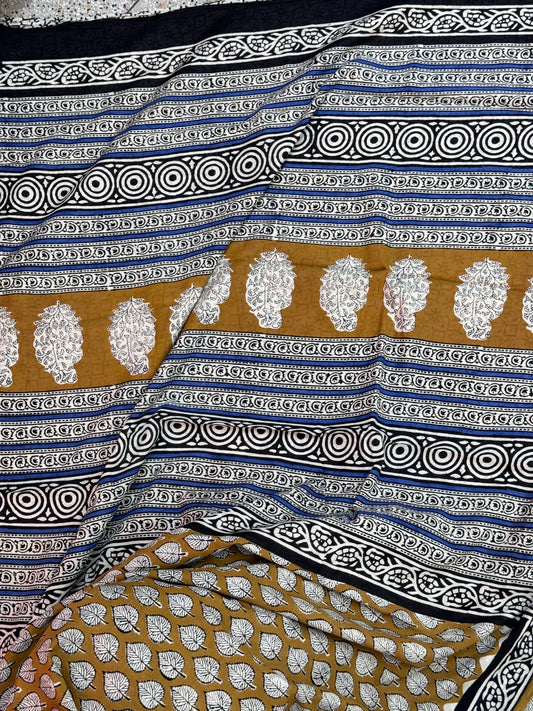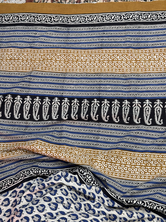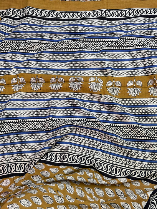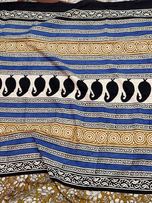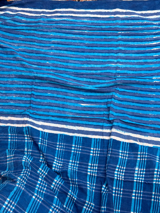 Blue handblock Print Cotton Saree