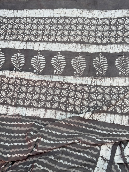 Sold outGrey Handblock Printed Cotton Saree
