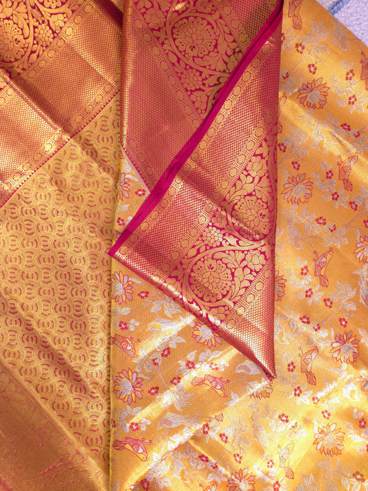 Golden Yellow Pure Tissue Kanjivaram Saree