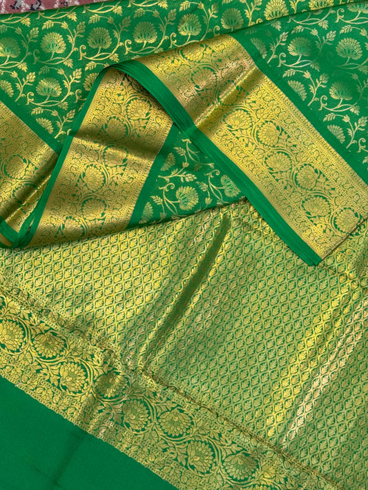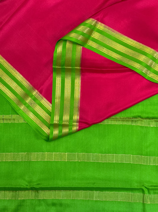 Sold outYellow Pink Mysore Crepe Silk Saree