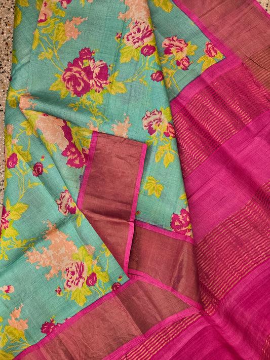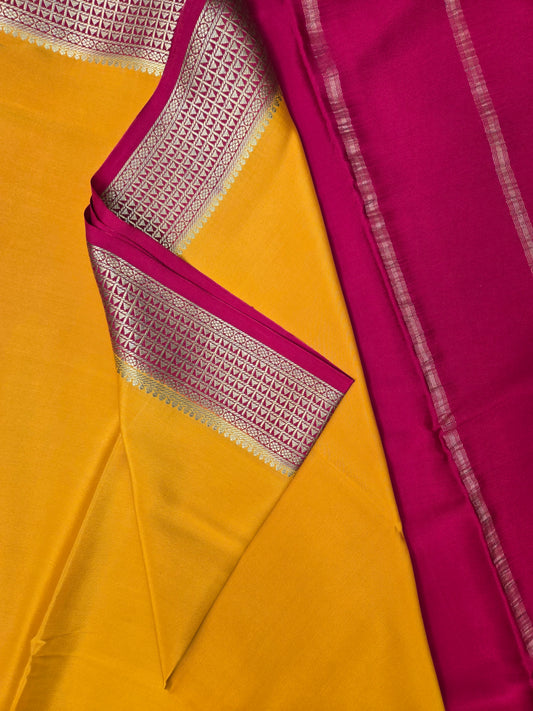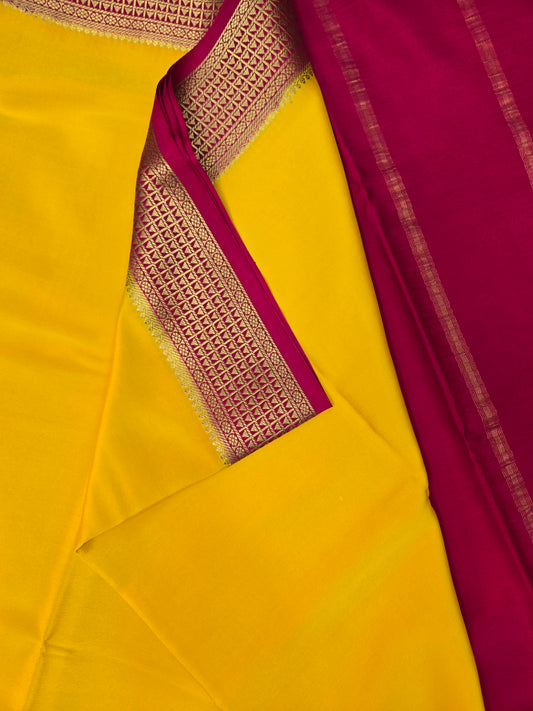 Sold outYellow Pink Mysore Crepe Silk Saree