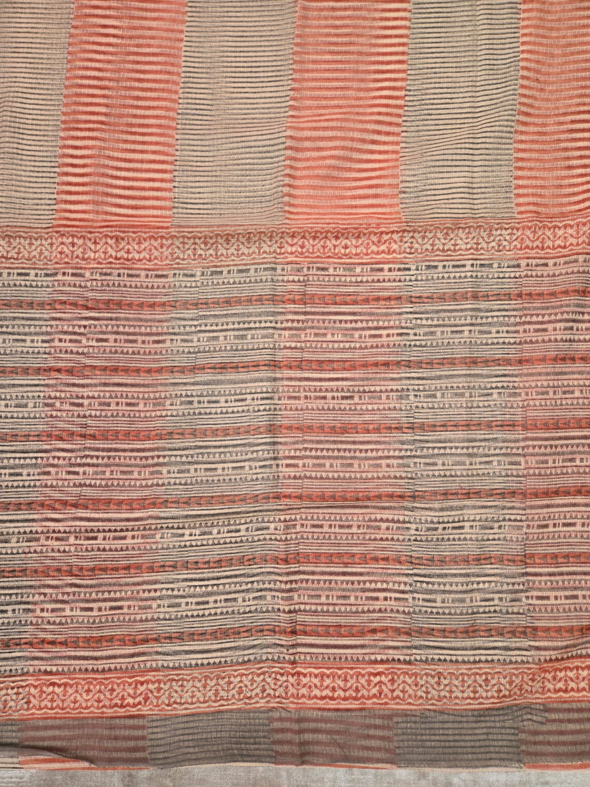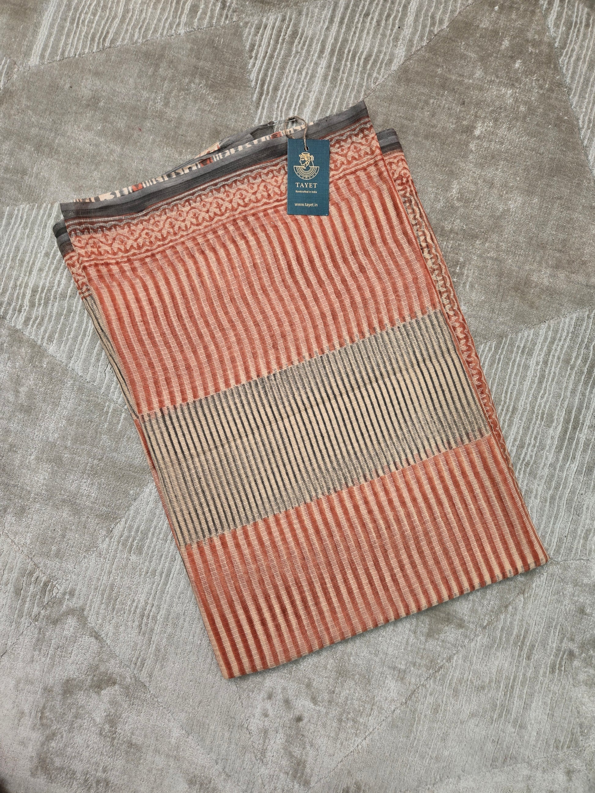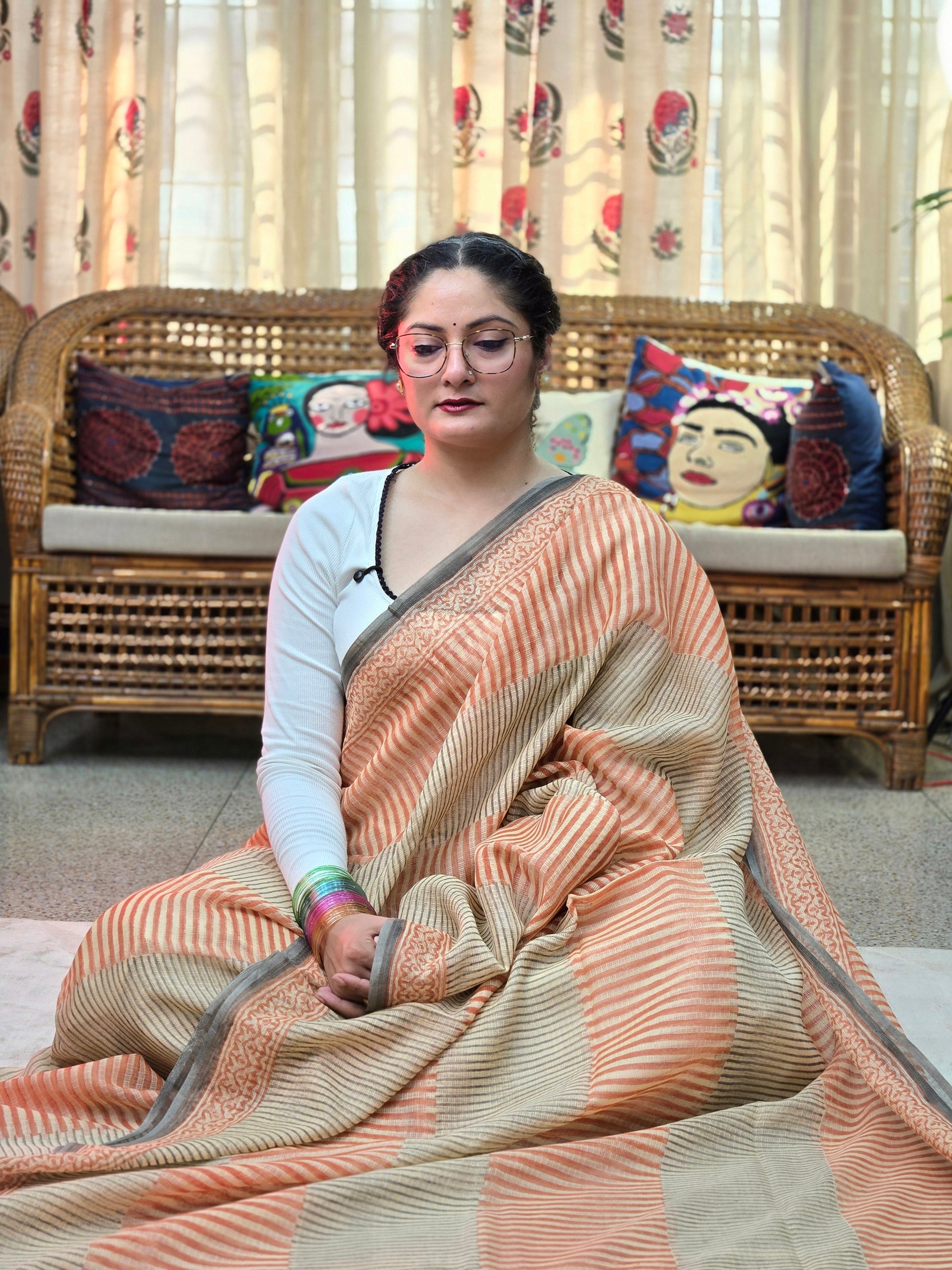 PEACH BEIGE HANDBLOCK KOTA DORIYA SAREE