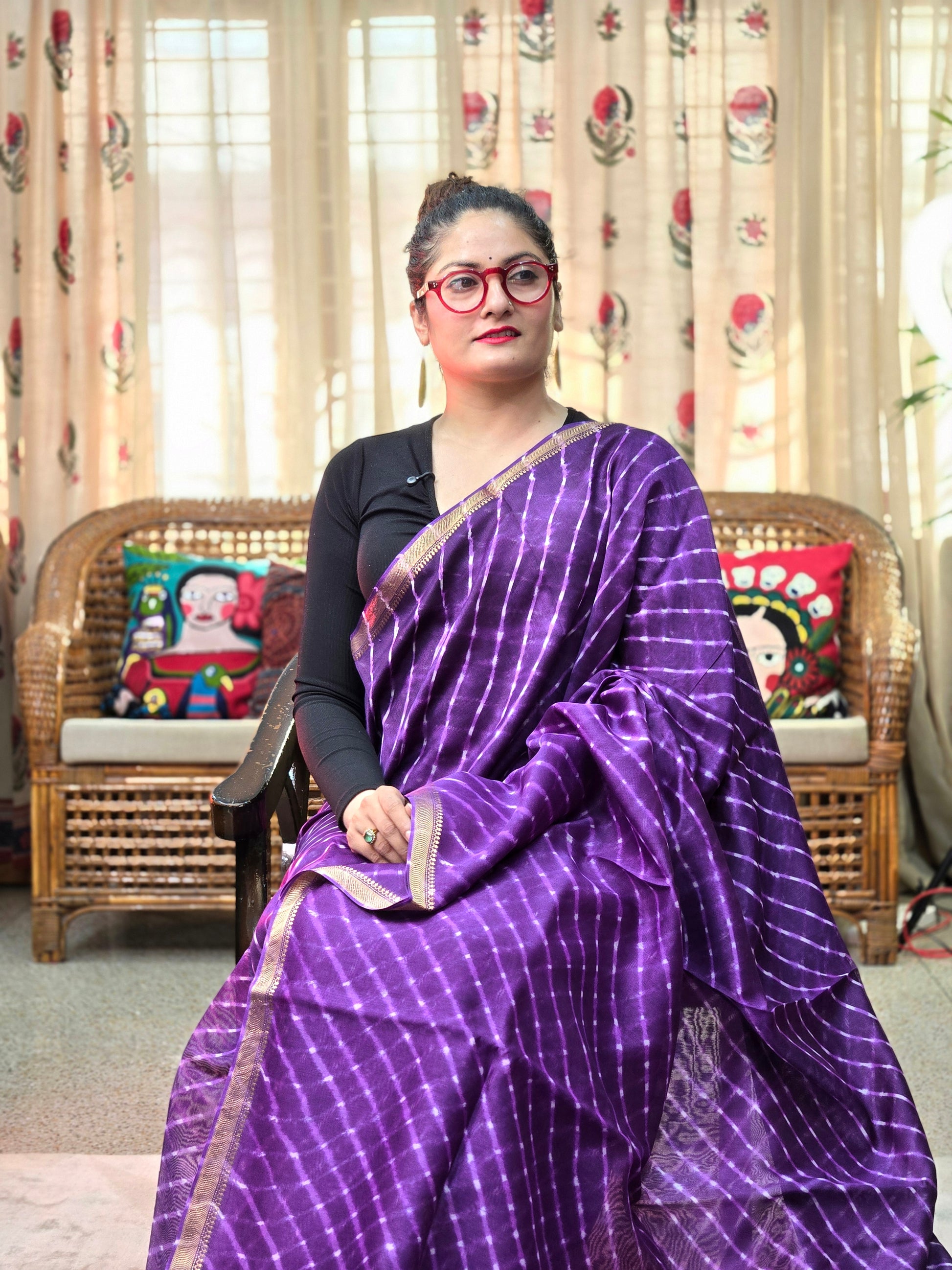 PURLE TIE DYE LEHARIYA SILK COTTON SAREE