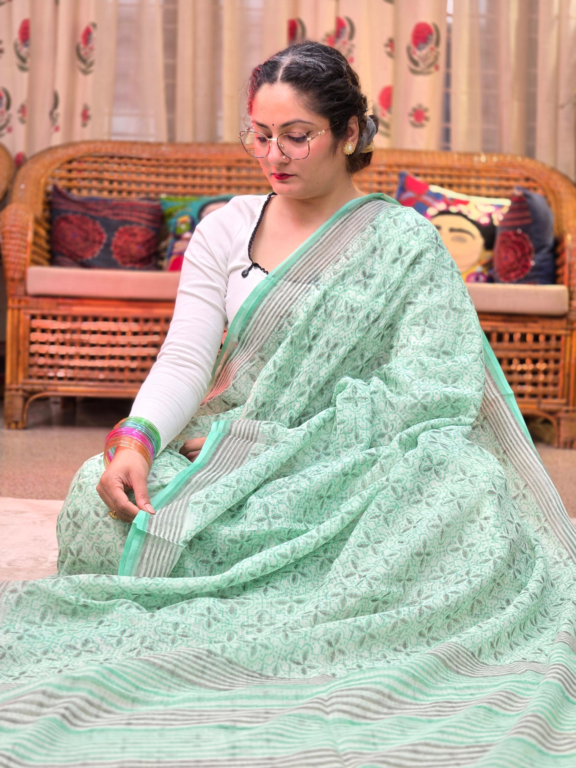 TURQUOISE HANDBLOCK KOTA DORIYA SAREE