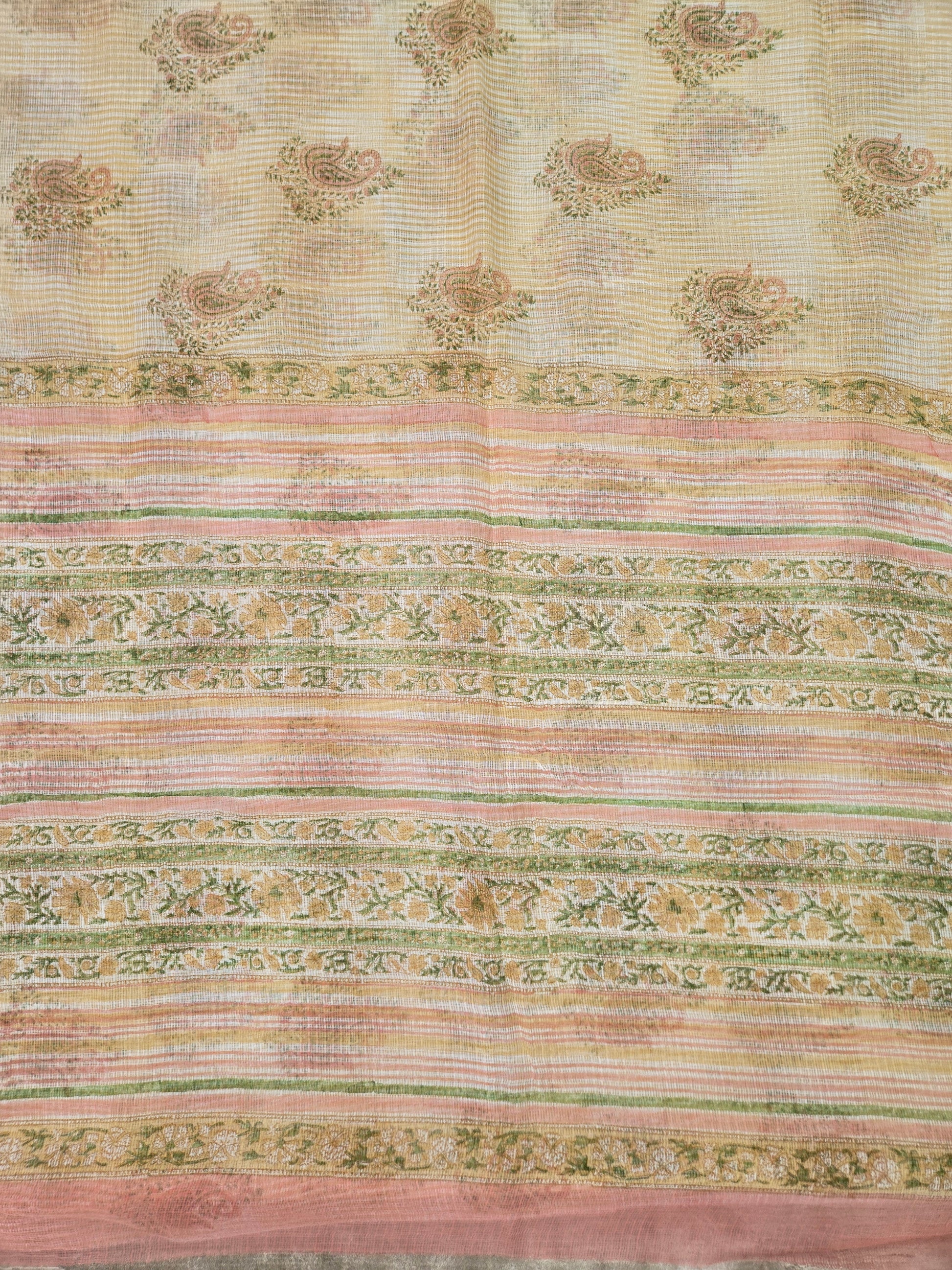 WHITE PEACH HANDBLOCK KOTA DORIYA SAREE