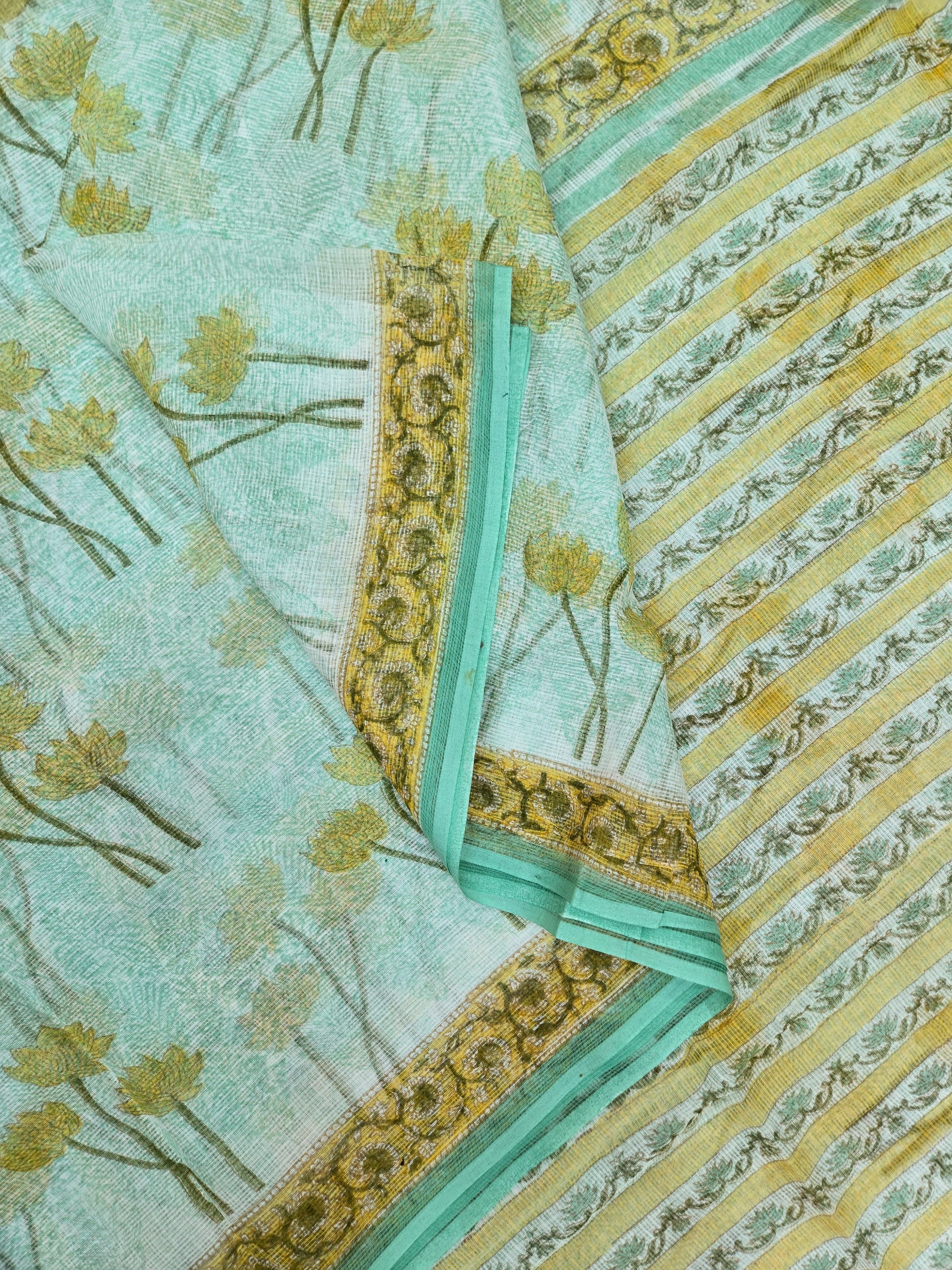 WHITE TURQUOISE HANDBLOCK KOTA DORIYA SAREE
